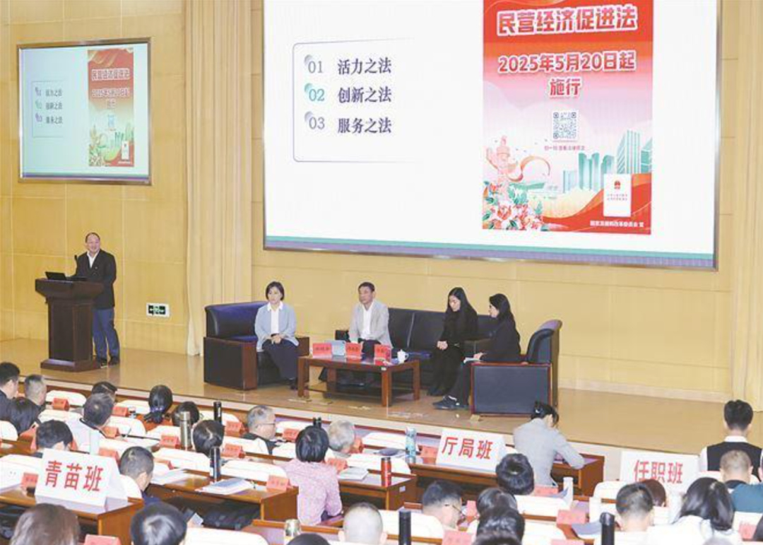 以“贯彻落实党的二十届四中全会精神 强化厦门民营经济高质量发展法治保障”为题,邀请厦门市工商联党组成员、副主席邱向东,厦门市律师协会仲裁与调解委员会主任郑安安,厦门自贸全球可持续发展创新中心筹建组负责人许欣欣3位嘉宾,与市委党校第45期“新思想”厅局级干部进修班、第83期处级干部进修班、第77期处级干部任职班、第8期青苗班的百余位学员展开深入探讨。