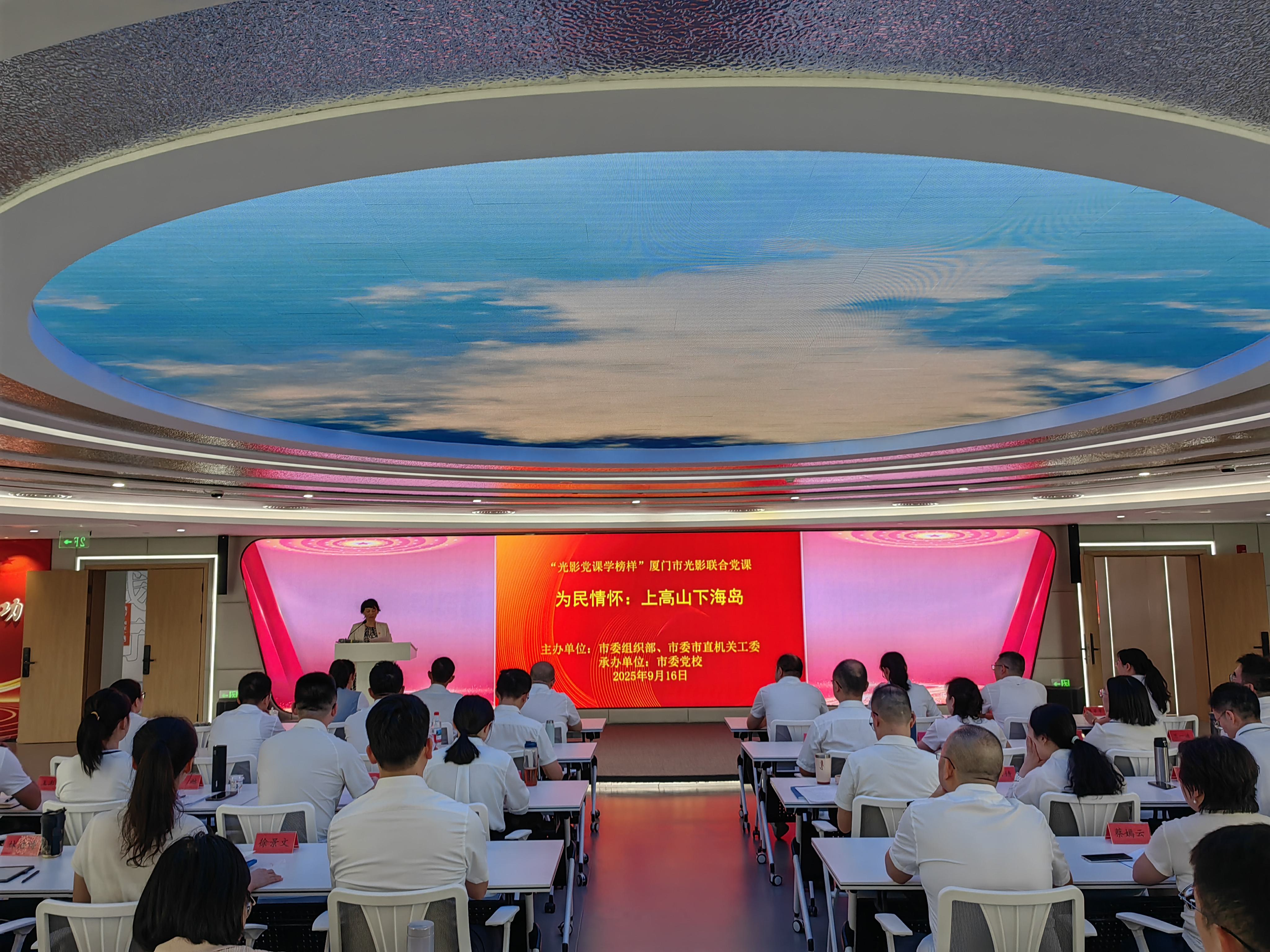为贯彻落实新修订的《中国共产党党校(行政学院)工作条例》,以及《厦门市贯彻<全国党校教育培训工作规划(2024-2028年)>若干措施》有关要求,深入开展“学习身边榜样”和“党课开讲啦”活动,近日,厦门市委党校在“学习之路”主题教室举办“为民情怀:上高山下海岛”光影联合党课,第8期青才班学员,以及市委党校各支部党员代表共70余人一起在形式新颖的党课中感悟初心使命、汲取奋进力量。