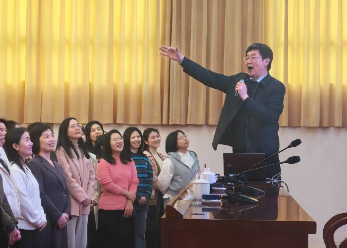 曹琨教授指出,陕北民歌不仅是黄土高原上的艺术瑰宝,更是一部用音符镌刻的革命史诗。红军长征抵达陕北后,这片厚重的黄土地成为中国革命的新起点,陕北民歌也从乡土小调蜕变为承载革命理想、唤醒民众意识的战斗号角。通过对《东方红》《拥军花鼓》《南泥湾》《绣金匾》《军民大生产》等经典曲目的创作背景、歌词演变和音乐特征进行深入剖析,生动展现了陕北民歌如何将宏大的革命叙事转化为人民群众“听得懂、唱得响、传得开”的情感表达。报告会通过梳理陕北民歌的革命历史脉络与精神内核,为学员上了一堂生动的音乐党史课,促进了大家对红色音乐文化价值与当代传承的深入思考。