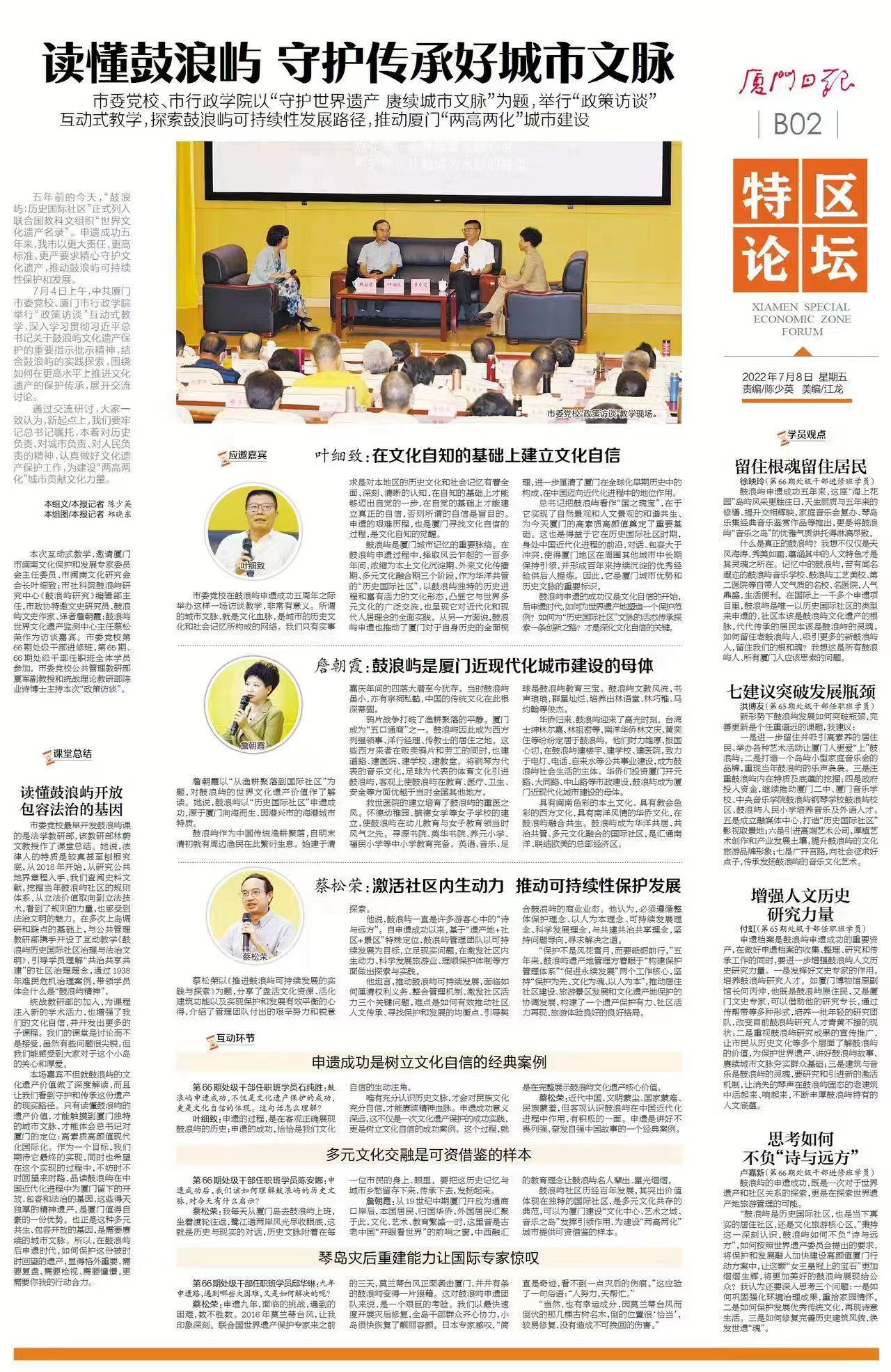 近日,我校(院)举行题为“守护世界遗产,赓续城市文脉”的“政策访谈”互动式教学,旨在引领学员深入学习贯彻习近平总书记关于鼓浪屿文化遗产保护的重要指示批示精神,共同探索鼓浪屿可持续性发展路径,推动厦门“两高两化”城市建设。