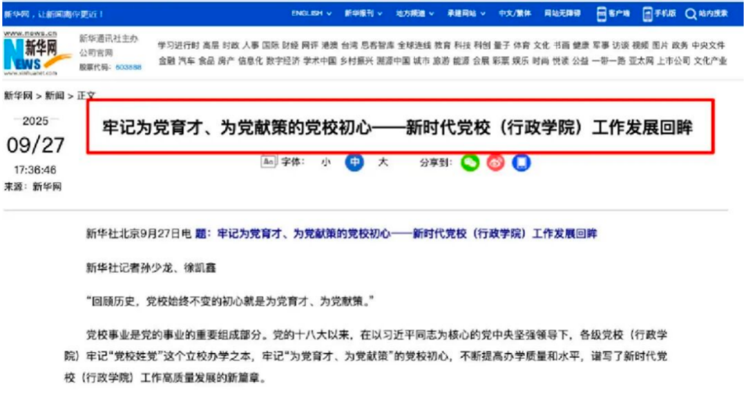 2025年9月,新华社刊发的通讯文章《牢记为党育才、为党献策的党校初心——新时代党校(行政学院)工作发展回眸》中,市委党校“为党献策”做法被作为全国基层党校唯一范例。