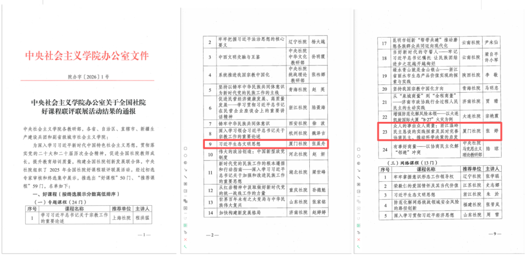 其中,由张晨舟老师主讲的《习近平生态文明思想》获评“好课程”。