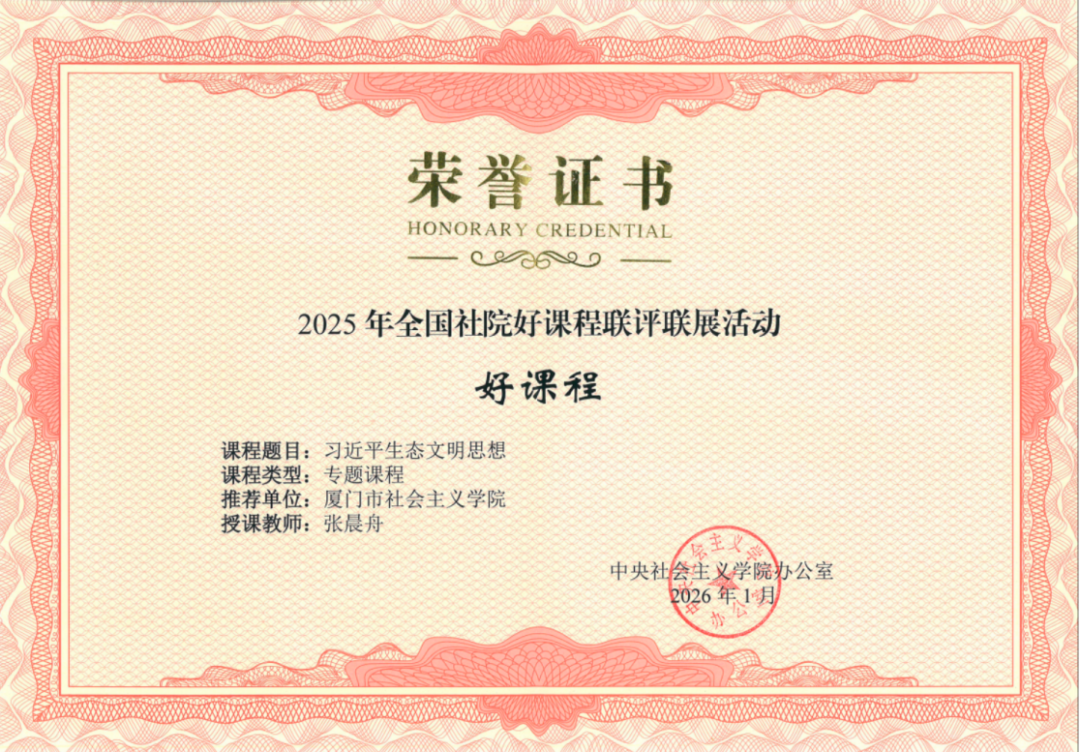 厦门社院将以此次获奖为新起点,深入贯彻落实第十八次全国社会主义学院院长会议精神,深耕统战教育主责主业,持续聚焦习近平新时代中国特色社会主义思想和统战理论政策,打磨更多兼具思想深度、实践温度的精品课程,不断提升教学质量和育人实效,为培养高素质统战人才、服务新时代统战工作高质量发展贡献力量!